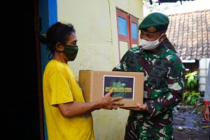 MALANG WW.LBILENBARI.COM Panglima Divisi Infanteri 2 Kostrad Mayjen TNI Tri Yuniarto, S.A.P., M.Si., M.Tr (Han) menyerahkan secara simbolis paket Sembako...