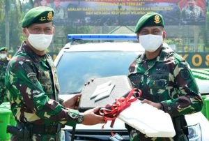 SINGOSARI WWW.LBIIENBARI.COM-Pang Divisi Infanteri 2 Kostrad Mayjen TNI Tri Yuniarto, S.A.P, M.Si, M.Tr (Han) memberikan bantuan Kendaraan Operasional Pengawalan...