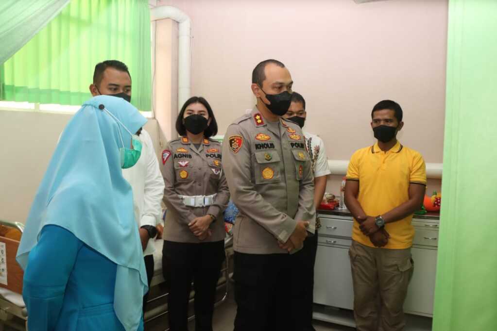Kapolres memberikan motivasi semangat agar korban bisa segera pulih sembari memanjatkan doa kepada Sang Pencipta memohon kesembuhan.