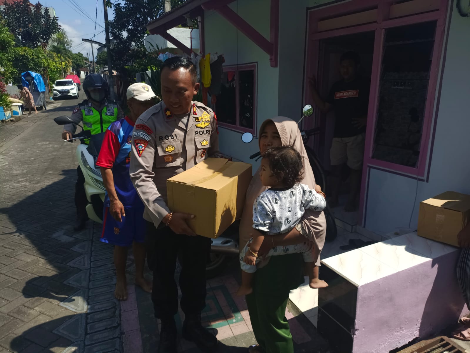 Polsek Singosari,Polres Malang,Sambut Lebaran Bagi bagi Parsel  dan Sembako