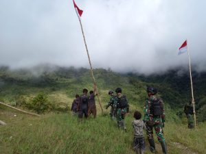 Satgas Yonif PR 433/JS Ajak Anak-anak Muda Papua Distrik Yigi Pasang Bendera Merah Putih Sebagai Wujud Kecintaannya Terhadap Bangsa Indonesia