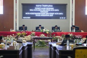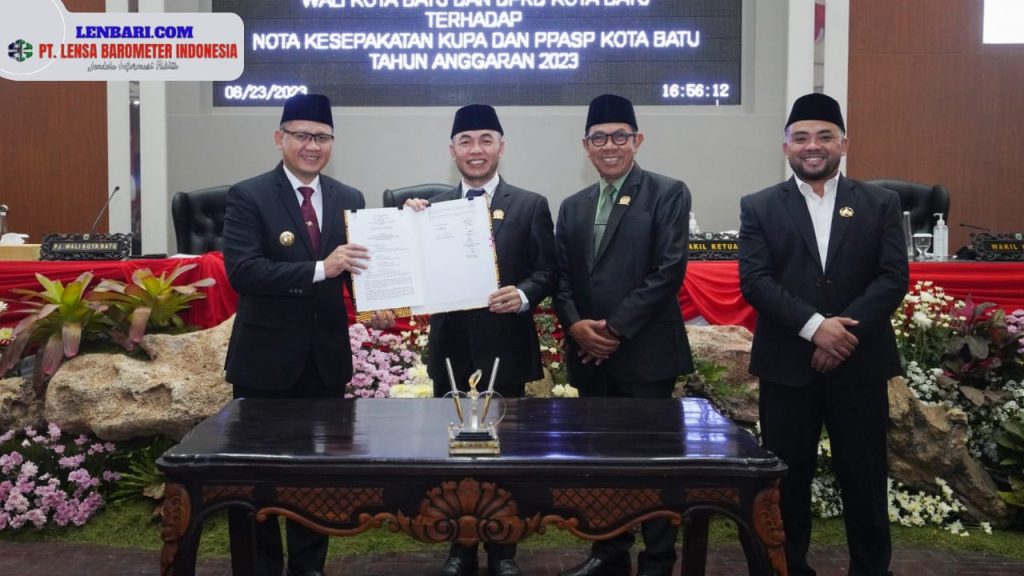 KOTA BATU LENBARI. COM ||Dewan Perwakilan Rakyat Daerah (DPRD) Kota Batu bersama Pj. Wali Kota Batu sepakat terhadap Kebijakan Umum Perubahan Anggaran (KUPA) dan Prioritas Plafon Anggaran Sementara Perubahan (PPAS-P) APBD Tahun Anggaran 2023. Penandatanganan Nota Kesepakatan dilakukan dalam Rapat Paripurna di Ruang Rapat Paripurna DPRD, Rabu (23/08).