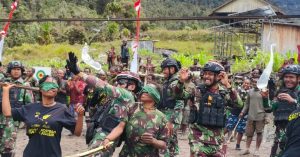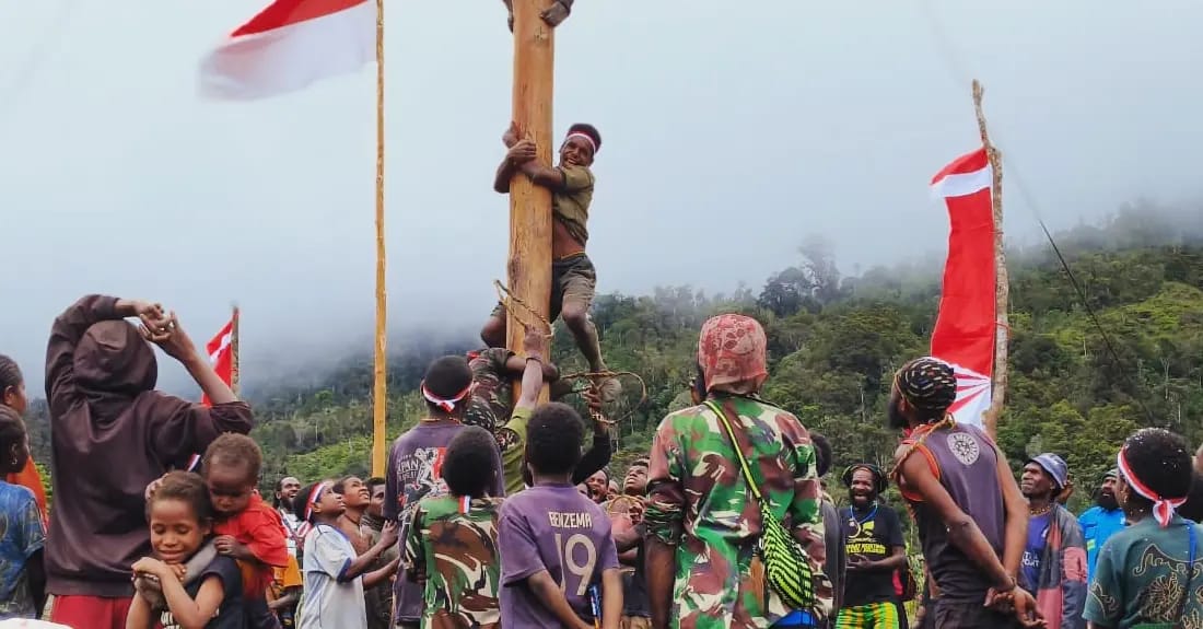 NDUGA LENSA BAROMETER INDONESIA – Bagi Masyarakat Distrik Dal, kesempatan untuk menunjukkan rasa Jiwa Nasionalisme sangat jarang ditemukan. Dikarenakan wilayah Nduga Atas, kerap menjadi tempat Konflik dengan kelompok KSTP. Demi menanamkan rasa kebangsaan dan menunjukkan rasa cinta tanah air, maka tepat pada Senin (4/9/2023) Satgas Mobile Yonif PR 433/JS, selain melaksanakan Upacara Bendera, juga membuat beberapa rangkaian acara bersama masyarakat Distrik Dal, Kab. Nduga.