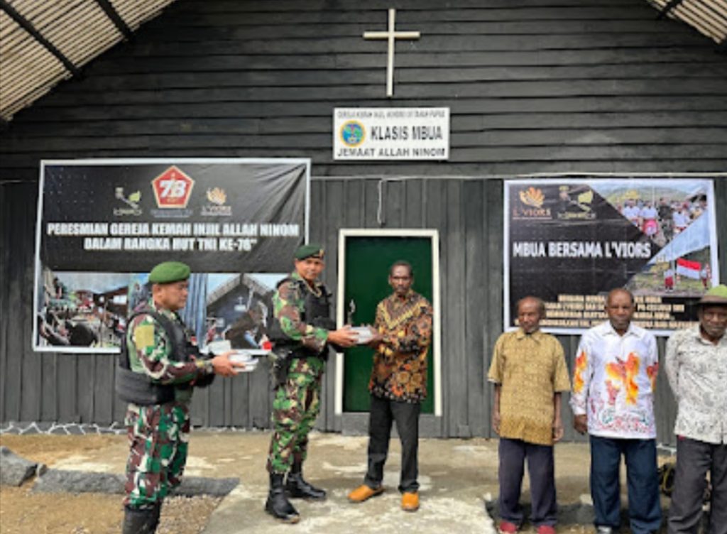 Kegiatan tersebut dimulai dengan renovasi Gereja Kemah Injil Allah Ninom yang terletak hanya 380 meter dari Pos Mbua. Proses renovasi gereja ini berlangsung selama satu bulan, dan dengan bangga, gereja yang telah direnovasi tersebut diresmikan tepat saat peringatan HUT TNI ke-78. Ini menjadi simbol sinergi dan kebersamaan antara TNI dan warga setempat dalam merayakan hari bersejarah ini.