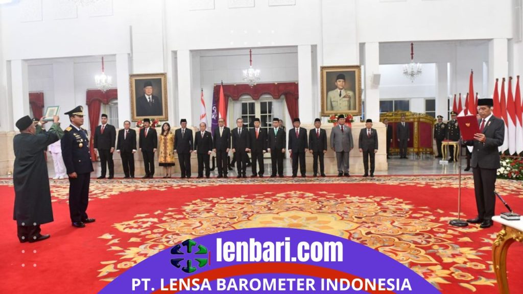 Usai pembacaan Keppres, Presiden Jokowi melakukan penyematan tanda jabatan, dilanjutkan dengan pengambilan sumpah/janji jabatan.