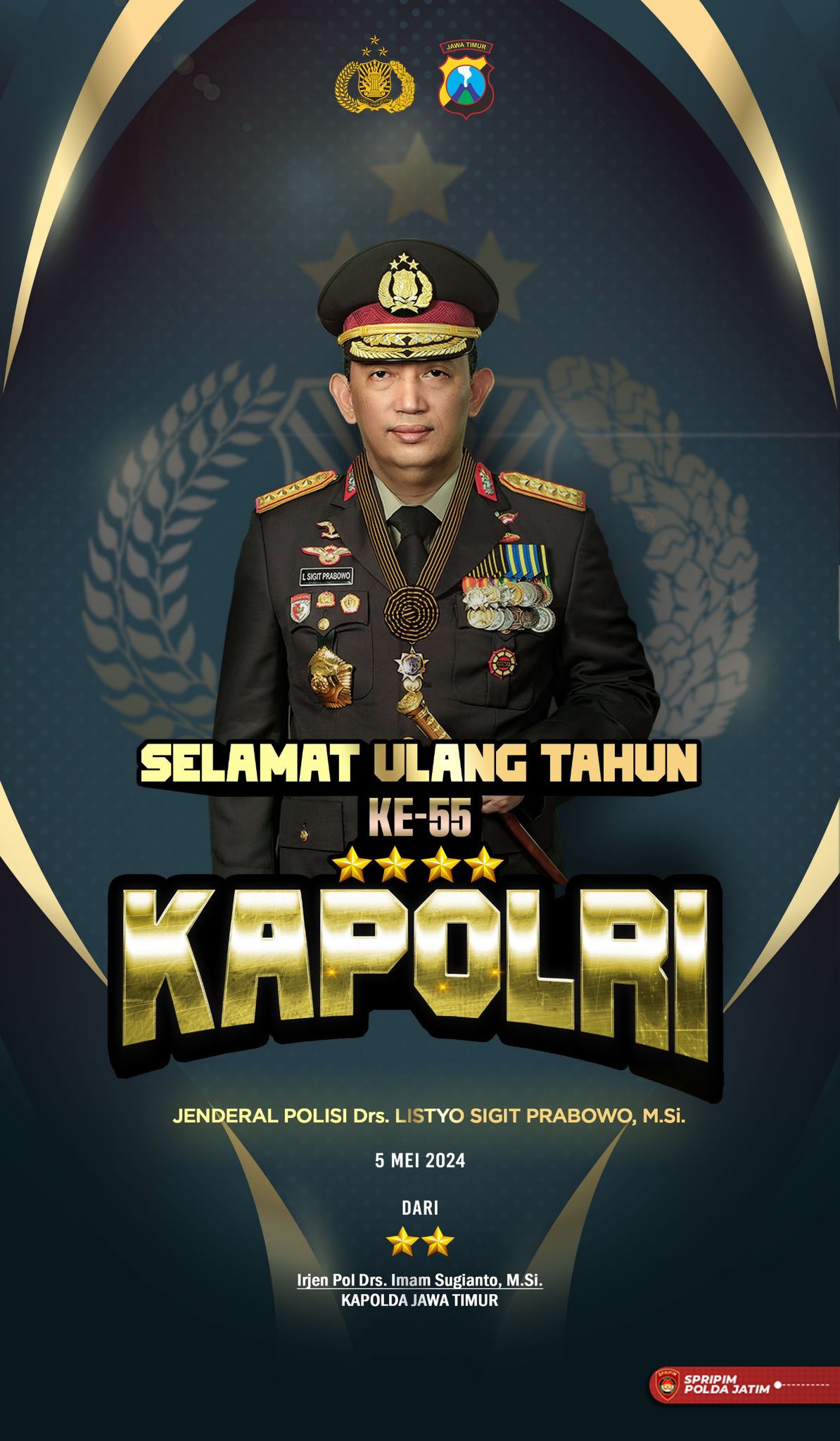 Mengucapkan Selamat Ulang Tahun yang ke-55 Kapolri Jenderal Polisi Drs. Listyo Sigit Prabowo, M.Si.