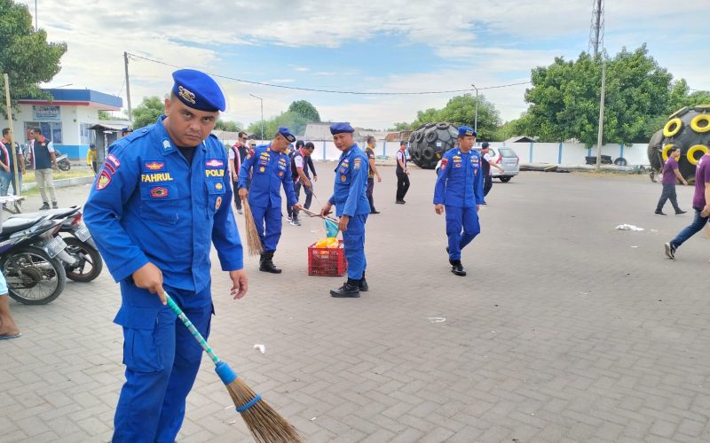 Satpolairud Bersama Masyarakat Bersihkan Pantai Situbondo