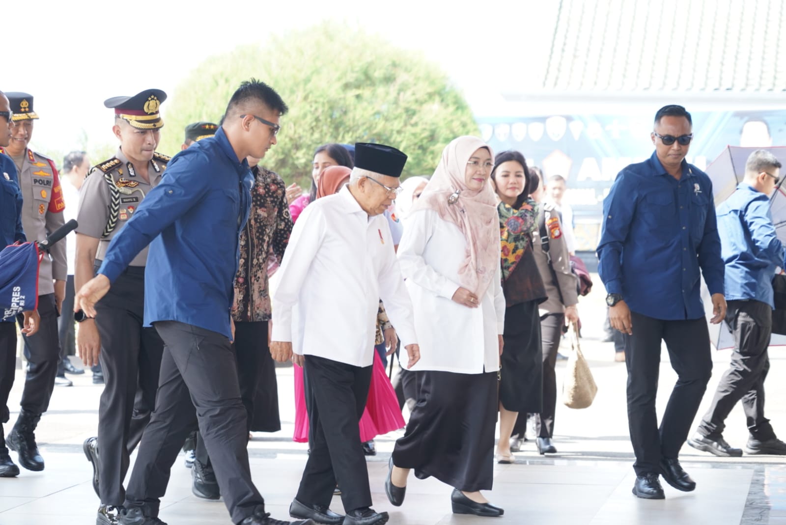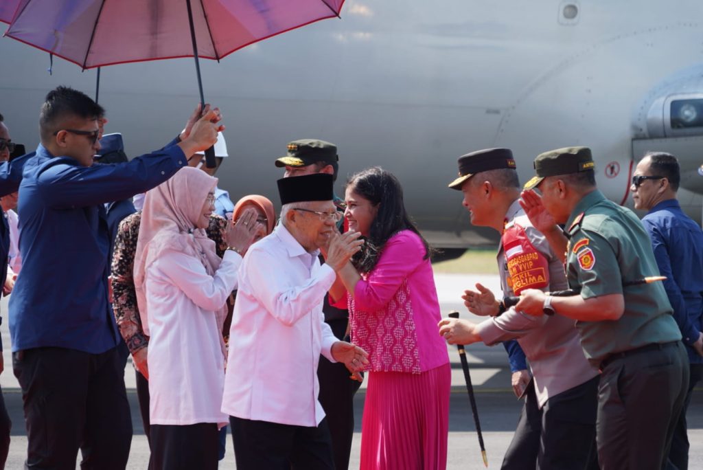 Kedatangan Wakil Presiden RI Prof. Dr. (H.C) K.H. Ma’r uf Amin beserta Ibu HJ. Wury Ma’ruf Amin dan rombongan menggunakan Pesawat Khusus Kepresidenan Boeing 737-400 milik TNI-AU.