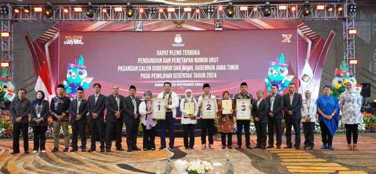 Surabaya lenbari.com ||Komisi Pemilihan Umum Provinsi Jawa Timur (KPU Jatim) menggelar Rapat Pleno Terbuka … Lanjutkan membaca KPU Jatim Gelar Pengundian dan Penetapan Nomor Urut Paslon Pilgub 2024