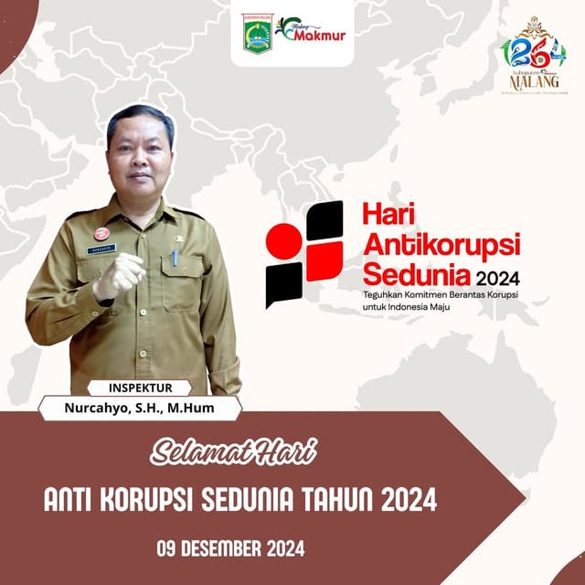 Daerah Nurcahyo, SH. M.Hum. Inspektur Kabupaten Malang Mengucapkan admin 20 Desember 2024 0 BACA JUGA: Polri Harus Makin Profesional dan Berbakti kepada Bangsa BACA JUGA: Inspektur Kabupaten Malang, Dengan Tegas Komitmen Berantas Korupsi Related Posts:Perumda Tirta Kanjuruhan,Halal Bihalal Sekaligus…Pemkab Malang dan BPKP Jatim Gelar Workshop…PERUMDA TIRTA KANJURUHAN LUNCURKAN PROGRAM SAMBANG…KPK Akan Terus Memantau Pelaksanaan Pembangunan dan…Penjabat Sekda Kabupaten Malang Baru, Ir. Tomie…Penyampaian Rancangan Peraturan Daerah tentang…Powered by Contextual Related Posts Continue Reading Previous Inspektur Kabupaten Malang, Dengan Tegas Komitmen Berantas KorupsiNext Karangtaruna Desa Giriharjo Bisa Untuk Contoh ,Musim Hujan Melaksanakan Penanaman Pohon More Stories Daerah Politik Reses DPRD Kabupaten Malang, Gus Top Serap Aspirasi Warga Lawang dalam Nuansa Idulfitri admin 6 April 2026 0 Advetorial Daerah Bupati Malang Hadiri Halal Bihalal Perumda Tirta Kanjuruhan admin 28 Maret 2026 0 Daerah Diduga Ada Oknum Juru Parkir Liar Arogan di RTH Maron,Pengunjung Resah admin 14 Maret 2026 0 Tinggalkan Balasan Batalkan balasanAnda harus masuk untuk berkomentar.