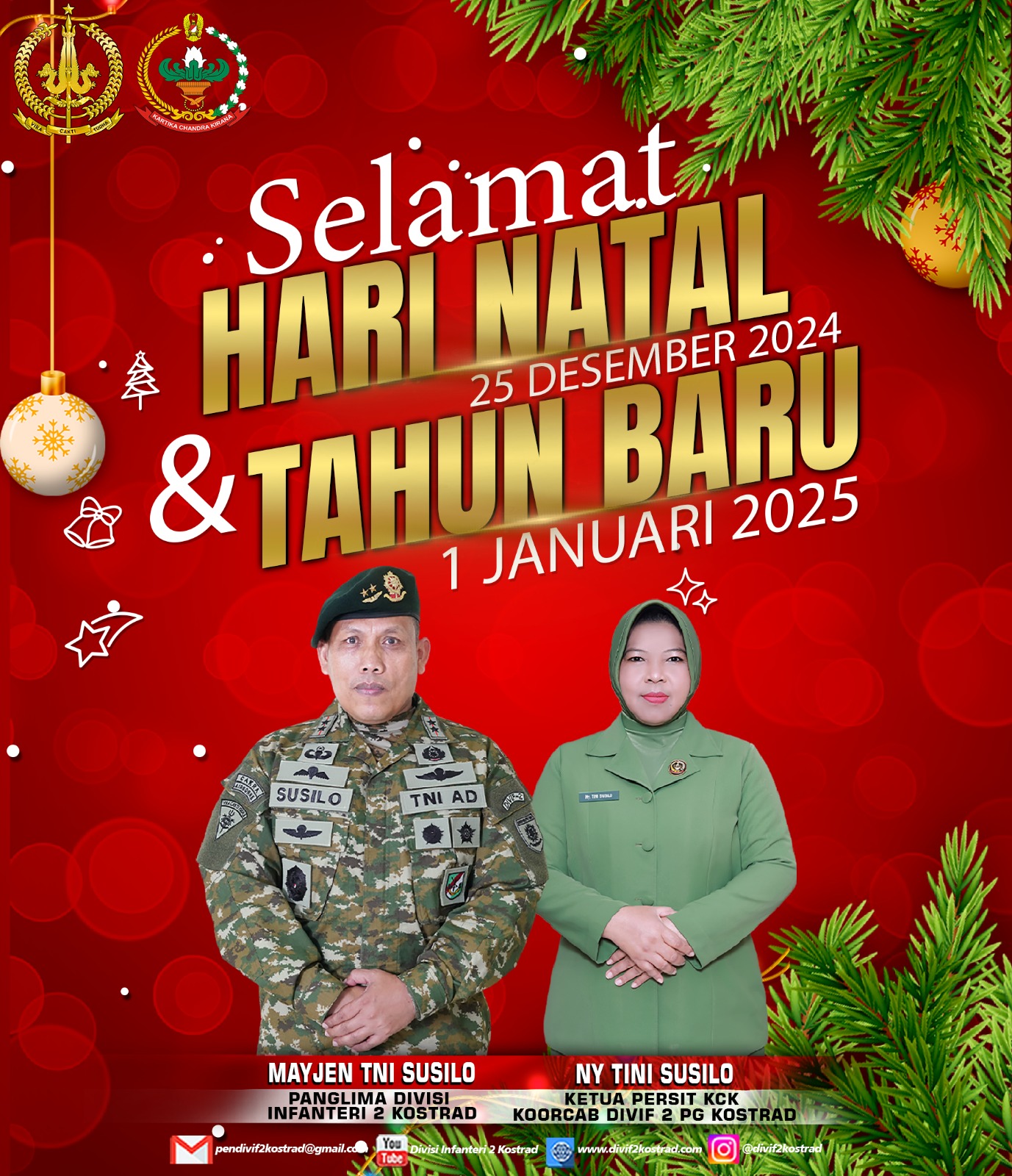 Iklan Nasional MAYJEN TNI SUSILO PANGLIMA DIVISI INFANTERI 2 KOSTRAD Mengucapkan admin 2 Januari 2025 0 BACA JUGA: Presiden Prabowo Apresiasi TNI – POLRI Amankan Nataru 2025 BACA JUGA: Sambut Tahun Baru 2025 ,Lawang Bersholawat di Dukung Oleh PT. Exel Mandiri Inovasi Related Posts:Pangkostrad Pimpin Sertijab Pangdivif 2 Kostrad Dari…Puncak Peringatan HUT Ke-63 Kostrad di Beach City…Panglima Kostrad Letjen TNI Mohamad Hasan Pimpin…Mayjen TNI Primadi Saiful Sulun resmi jabat Panglima…Mayjen TNI Mohamad Hasan, Resmi Jabat PangkostradDivif 2 Kostrad Gelar Acara Syukuran dan Halal Bi…Powered by Contextual Related Posts Continue Reading Previous Presiden Prabowo Apresiasi TNI – POLRI Amankan Nataru 2025Next Kadivhumas Polri Dijadwalkan Beri Kuliah Umum untuk Taruna Akpol More Stories Nasional Warga Lawang Gelar Aksi Bersih Sungai, Dukung Program Penanganan Sampah Nasional admin 11 April 2026 0 Nasional Prabowo Gelar Bazar Rakyat di Monas, Hadirkan Kebahagiaan Lebaran untuk Warga admin 28 Maret 2026 0 Advetorial Iklan Keluarga Besar Bagian Umum Kabupaten Malang Mengucapkan admin 26 Maret 2026 0 Tinggalkan Balasan Batalkan balasanAnda harus masuk untuk berkomentar.