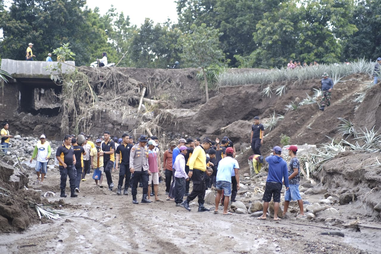 Kapolres Kediri AKBP Bimo Ariyanto S.H., S.I.K, melalui Kasat Samapta Polres Kediri AKP I Nyoman Sugita menuturkan kegiatan ini merupakan tanggap bencana dan kerja bakti bersama warga sekitar.