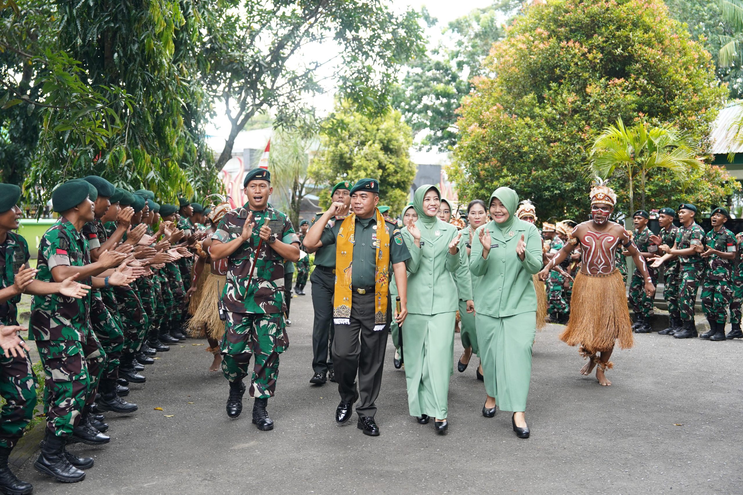 Disambut oleh Tarian Yospan lengkap dengan lagu pengiring yang dimainkan oleh prajurit Yonif 751/VJS, Pangdam memasuki Kesatrian didampingi Danyonif 751/VJS. Kegiatan selanjutnya, Pangdam yang bersama istri tercinta memberikan pengarahan kepada seluruh Prajurit Yonif 751/VJS di Aula Sumarsono.