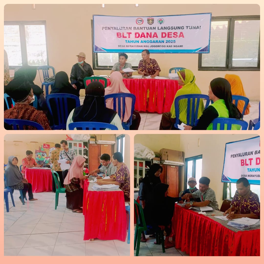 Lenbari. com Ngawi| Pemerintah Desa Ngrayudan Kecamatan Jogorogo Kabupaten Ngawi Laksanakan Penyaluran BLT DD Tahap 1 di Aula Kecamatan Jogorogo pada Kamis 20-03-2025 pada pukul 10.00-10.30 WIB sesuai jadwalnya.