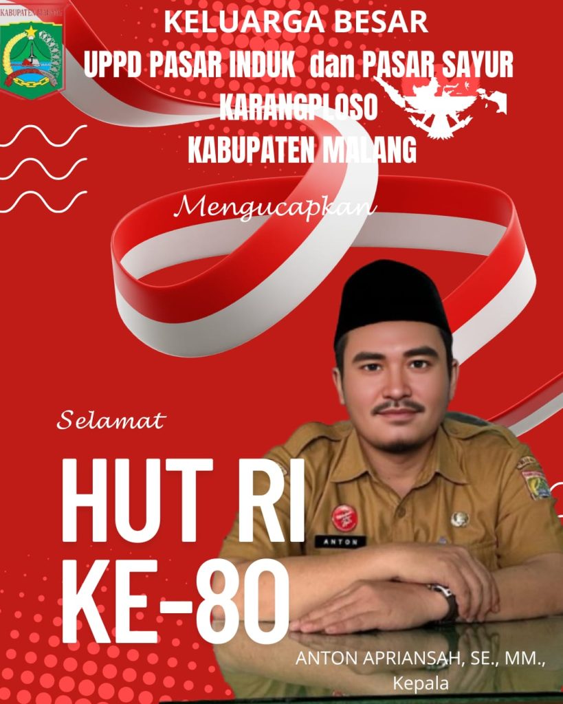 Advetorial Iklan Nasional Keluarga Besar, UPPD Pasar Induk dan Pasar Sayur Karangploso Kabupaten Malang Mengucapkan admin 4 Agustus 2025 0 BACA JUGA: Doa untuk Indonesia: Perwakilan Tokoh Lintas Agama Bersatu dalam Semangat Kebangsaan BACA JUGA: Sukses dalam Budidaya dan Pemasaran: Gapoktan Mitra Sejati Jadi Contoh di Kota Batu BACA JUGA: Keluarga Besar SPBU :54.651.05 Mengucapkan Dirgahayu RI ke-80 Tahun Related Posts:Pasar Semi Modern Sayur,Grosir Pasar Karangploso…DPR RI dan Ditjen Kemen PUPR Tinjau Persiapan…Pemkot Batu Jalin Kerja Sama Penyediaan Sarana…Polres Malang Doa Bersama di Pintu 13 Stadion KanjuruhanKarangploso Terlayani Lebih Baik: Tirta Kanjuruhan…Rancangan Peraturan Daerah tentang Perubahan…Powered by Contextual Related Posts Continue Reading Previous Keluarga Besar SPBU :54.651.05 Mengucapkan Dirgahayu RI ke-80 TahunNext Rapat Terbatas: Prabowo Soroti Penanganan dan Pencegahan Karhutla More Stories Nasional Warga Lawang Gelar Aksi Bersih Sungai, Dukung Program Penanganan Sampah Nasional admin 11 April 2026 0 Nasional Prabowo Gelar Bazar Rakyat di Monas, Hadirkan Kebahagiaan Lebaran untuk Warga admin 28 Maret 2026 0 Advetorial Daerah Bupati Malang Hadiri Halal Bihalal Perumda Tirta Kanjuruhan admin 28 Maret 2026 0 Tinggalkan Balasan Batalkan balasanAnda harus masuk untuk berkomentar.