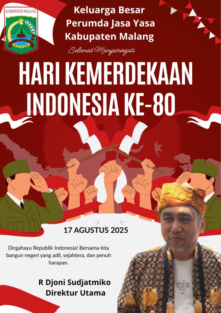 Advetorial Iklan Nasional Keluarga Besar Perumda Jasa Yasa Kabupaten Malang Mengucapkan admin 5 Agustus 2025 0 Doa untuk Indonesia: Perwakilan Tokoh Lintas Agama Bersatu dalam Semangat Kebangsaan Related Posts:PERUMDA TIRTA KANJURUHAN LUNCURKAN PROGRAM SAMBANG…Perumda Tirta Kanjuruhan yang ke- 42 Tahun Sukses…PERUMDA TIRTA KANJURUHAN,WUJUDKAN KOMITMEN DENGAN…Perumda Tirta Kanjuruhan,Halal Bihalal Sekaligus…Bupati Malang Sangat Apresiasi Kepada Direksi…PERUMDA TIRTA KANJURUHAN LAKSANAKAN OPTIMALISASI…Powered by Contextual Related Posts Continue Reading Previous Keluarga Besar Perumda Tirta Kanjuruhan Mengucapkan Next Prajurit Yonif 751/VJS Kibarkan Semangat Kemerdekaan, Lari 80 KM Keliling Danau Sentani Bawa Merah Putih More Stories Nasional Warga Lawang Gelar Aksi Bersih Sungai, Dukung Program Penanganan Sampah Nasional admin 11 April 2026 0 Nasional Prabowo Gelar Bazar Rakyat di Monas, Hadirkan Kebahagiaan Lebaran untuk Warga admin 28 Maret 2026 0 Advetorial Daerah Bupati Malang Hadiri Halal Bihalal Perumda Tirta Kanjuruhan admin 28 Maret 2026 0 Tinggalkan Balasan Batalkan balasanAnda harus masuk untuk berkomentar.