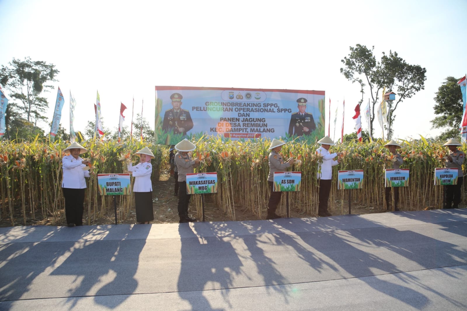 Kabupaten Malang lenbari.com ||Bupati Malang Saksikan Groundbreaking 205 SPPG Polri dan Panen Jagung Program Ketahanan Pangan di Desa Rembun Kecamatan Dampit, pada Rabu (6/8/2025) siang.