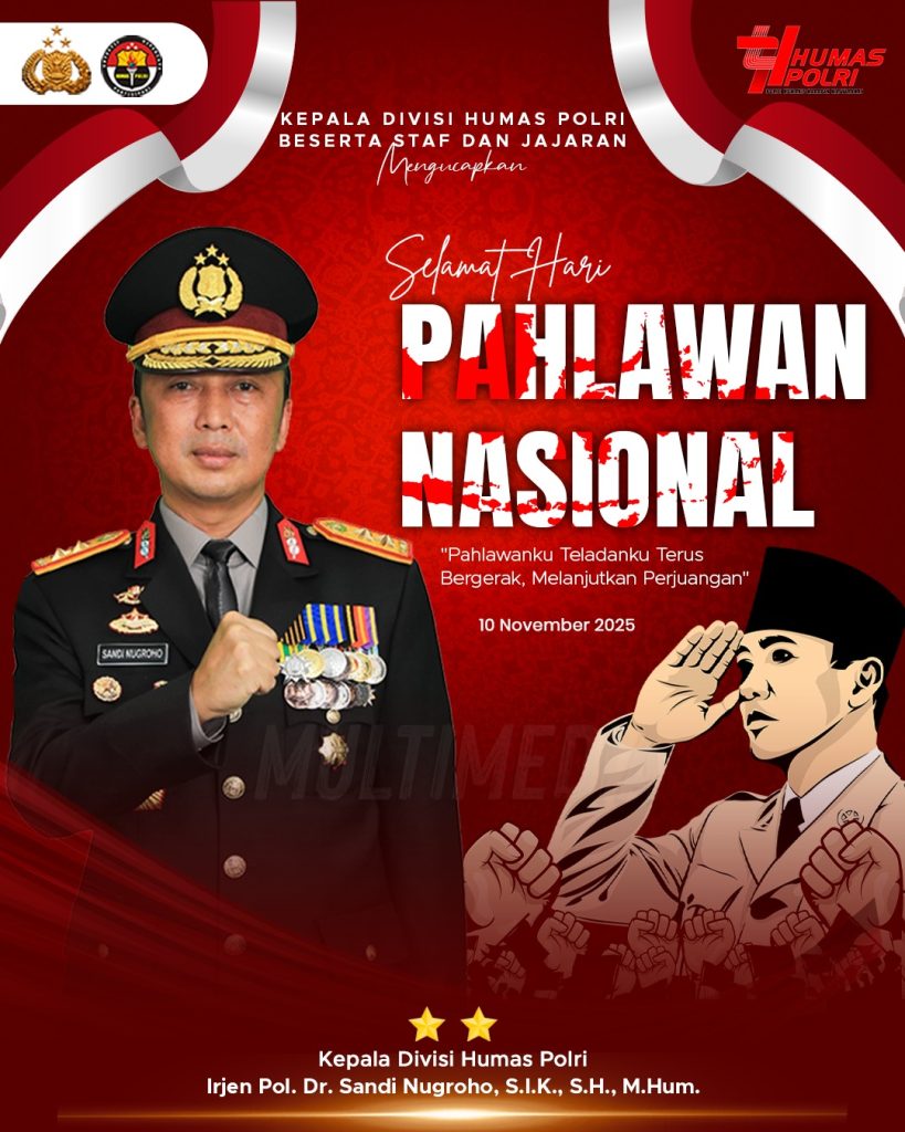 Kepala Divisi Humas Polri, Irjen Pol. Dr. Sandi Nugroho, S.I.K., S.H., M.Hum., mengucapkan selamat memperingati”Hari Pahlawan tahun 2025″