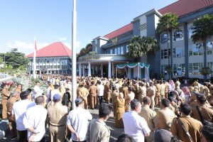 Kota Batu lenbari.com ||Wali Kota Batu, Nurochman, memimpin kegiatan apel pagi di halaman Balaikota Among Tani, Senin (8/4/2025)....
